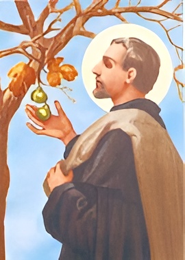 Thomas of Orvieto was drawn to enter the Servite Order by his great love of Our Lady and his desire to reach heaven. Because of his humility he asked to be admitted among the lay brothers. Often he was given the task of going from house to house seeking alms. Artistic representations of Blessed Thomas picture him carrying a knapsack with a fig branch in his hand, offering in the middle of winter, a bunch of figs to a pregnant woman who desired them. It seems that the artists wanted to depict both the solicitude of this man of God toward those who had recourse to him as well as the power of his intercession with God which was expressed by miracles.